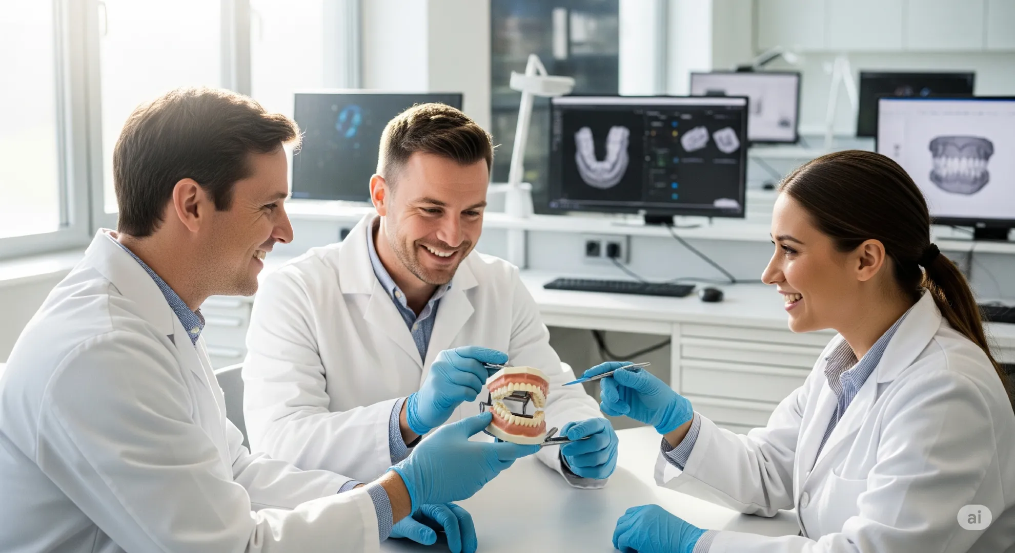 Patienten können bei uns direkt im Labor zur Farbnahme erscheinen – dokumentiert mit Fotos und Mustern für höchste Farbtreue.